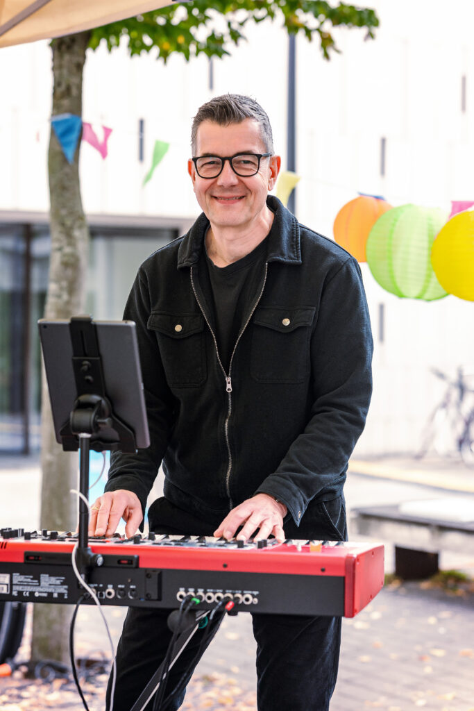 Mal spielt er Bass, mal spielt er bässer: „Ich liebe Groove, Energie und den Moment, wenn Musik Menschen verbindet.“ Wilfried ist unser Booking Kontakt, veranstaltet Events und betreibt eine Social Media Agentur, die unsere Webseite gestaltet hat.